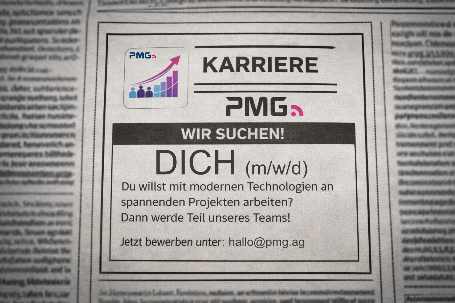 Sie wollen Kommunikation neu denken? Dann sind Sie bei uns richtig. PMG bietet Raum für Kreativität, Strategie und Design – in einem Umfeld, das Marken bewegt.