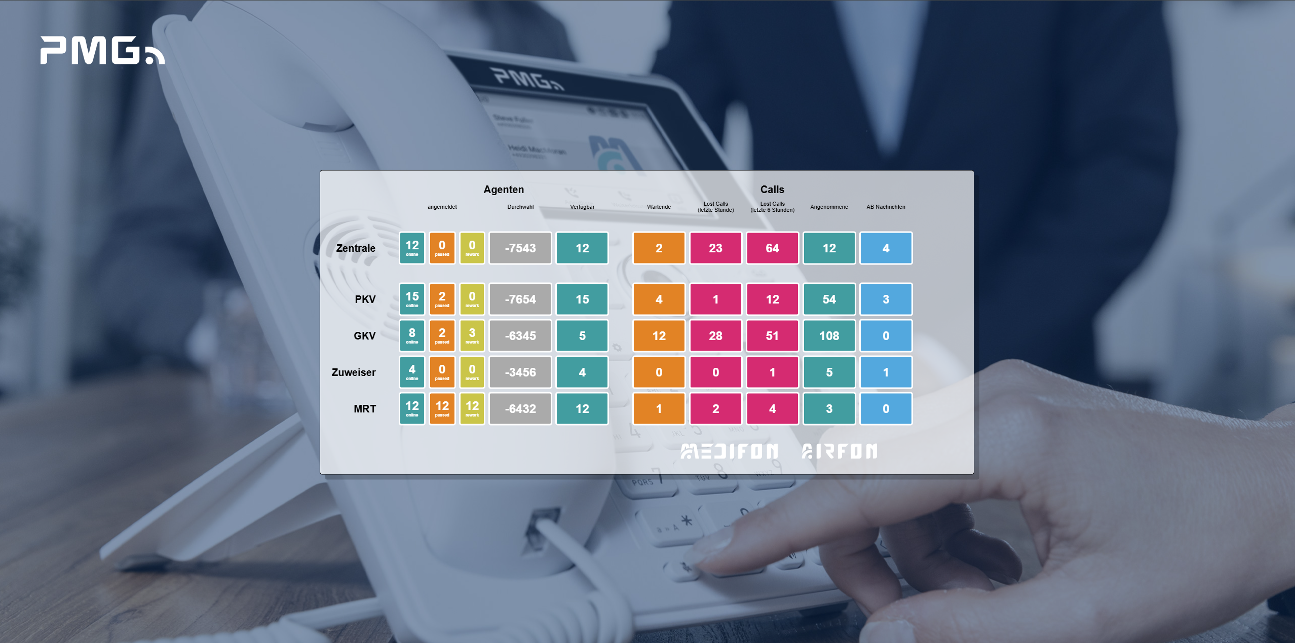 Unsere Reportings können optional als Live Wallboard visualisiert werden – in Echtzeit.